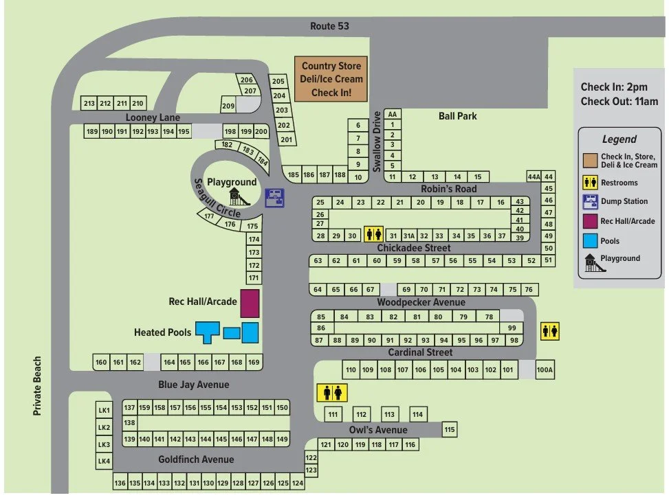 Take a virtual tour and explore all we have to offer. Step inside our general store, check out the pool, stroll along the waterfront, and see our facilities all from the comfort of your home. Click the link below to start your tour.